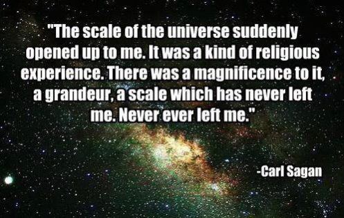*All of the atoms that make up the world, including the water, soil, plants, animals, you and me were created in the belly of a star. We are literally alive because, billions of years ago, a star died and exploded. The planet Earth is nothing more than a spherical chunk of molten stardust that has cooled on the surface while a primal fire still rages beneath in the mantel.
